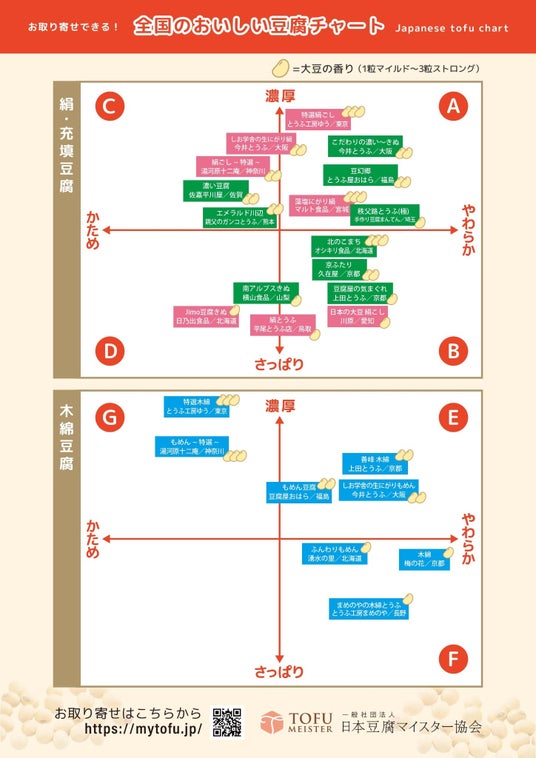 日本豆腐マイスター協会、豆腐の個性がわかる国内初の豆腐チャート『お取り寄せできる!全国のおいしい豆腐チャート2025 Ver.1』を作成・公表!