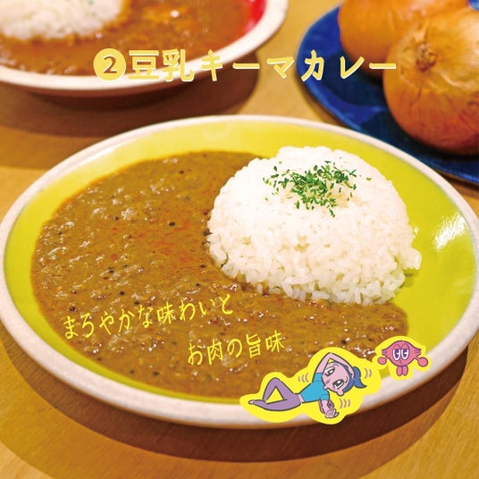 『豆乳キーマカレー』は、豆乳のまろやかさとお肉の旨味がぎゅっと詰まった優しい味わいのカレー。スパイスの香りとコクはありつつ、豆乳のおかげでマイルドに仕上がっているので、辛いものが苦手な方でも食べやすい一品です。