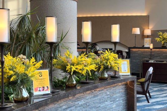 “幸せの黄色い花”であるミモザが、お客様を明るくお迎えいたします。黄色はポジティブなエネルギーを象徴し、ヨーロッパでは厳しい冬を乗り越え春の訪れを告げる花として親しまれています。スノーリゾートとして雪に囲まれるウェスティン ルスツリゾートで、一足先に春を感じる華やかな装飾をお楽しみください。