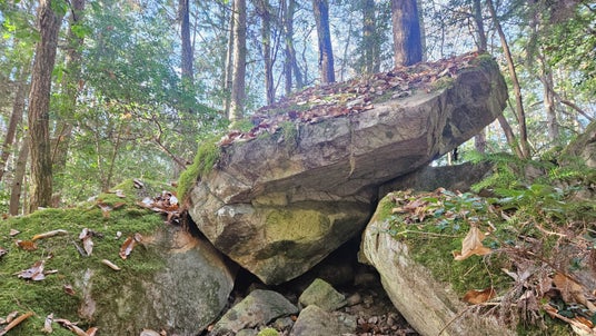 笠置山には古代人の文字ペトログラフが点在し、天然記念物の光苔やサンショウウオが生息しています。