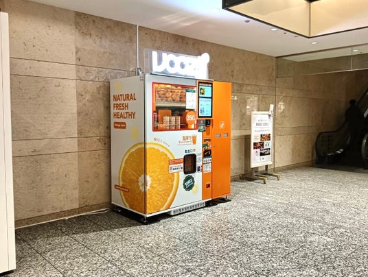 丸の内オアゾで稼働中の350円生搾りオレンジ自販機IJOOZ