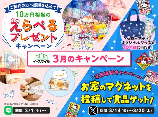 イースマイルでは、これまでたくさんのマグネットを作成し、皆様のお家のポストへお届けしてまいりました。そんなイースマイルのマグネットを保管してくれている方へ、感謝の気持ちを込めて、Xフォロワー様限定で、抽選で20名様にハローキティ オリジナルグッズが当たるキャンペーンを開催いたします。