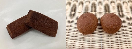 「ココアップ」を配合してココアの風味を増強したフィナンシェ(左)とロールパン(右)