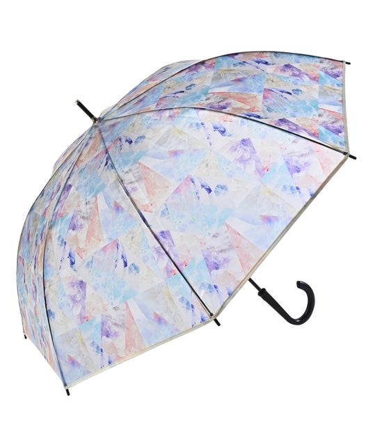 KiUオリジナルのテキスタイルデザインを透明感のあるプラスチック傘に採用。