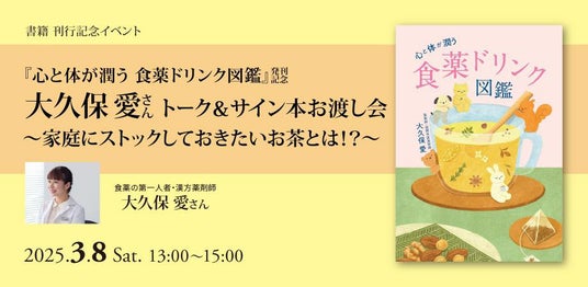 【3月8日(土)の国際女性デーの日にイベント開催】『心と体が潤う 食薬ドリンク図鑑』発売記念大久保愛さんトーク&サインお渡し会。テーマは「家庭にストックしておきたいお茶とは!?」