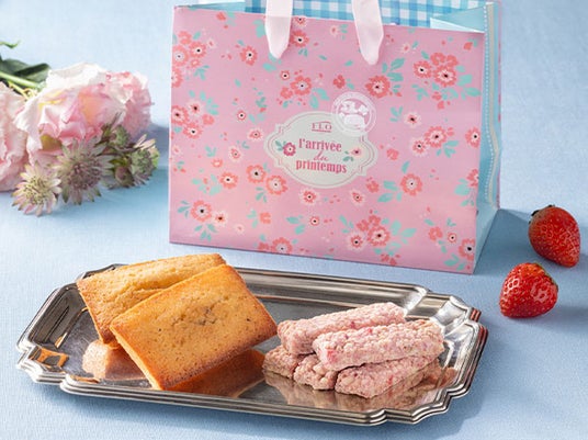 内容:フリーズドライ苺入りの「苺フィアンティーヌクランチチョコ」と、アーモンドとバターが香るFLO人気の定番焼菓子「フィナンシェノワゼット」を、春限定デザインのプティバック型パッケージに詰め合わせました。