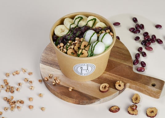 抹茶ボウル抹茶豆腐クリームの濃厚なコクに、白玉・ハトムギ・バナナ・小豆をトッピング。和の風味を楽しめる贅沢な一杯!