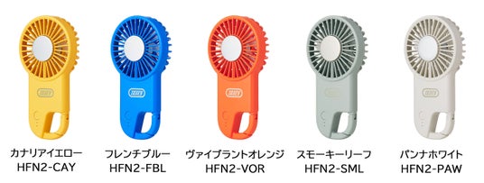品番・カラー :HFN2-CAY(カナリアイエロー)/ HFN2-FBL(フレンチブルー)/ HFN2-PAW(パンナホワイト)/ HFN2-SML(スモーキーリーフ)/ HFN2-VOR(ヴァイブラントオレンジ)