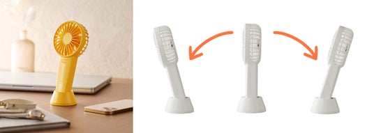 スタンドは差し込む向きによって角度を変えられるマルチアングルスタンドで、3段階の角度調節が可能です。ねらったところに風を送れるから、使用シーンが広がります。