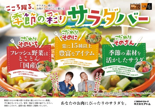コロワイドグループの株式会社アトム(本社:神奈川県横浜市、代表取締役社長:田中公博)は、「ステーキ宮」107店舗で、2025年3月4日(火)より「春のサラダ」をご提供いたします。