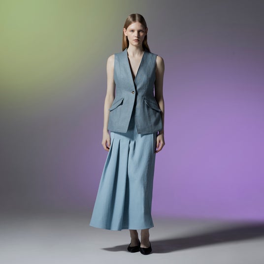 旅先で出会った、穀物やコーヒーなどを入れる麻袋「ドンゴロス」から着想を得たリネンベスト。太番手の上質な麻糸が織りなすハリのある質感と、バイオ加工による柔らかな風合いを兼ね備え、上品な美しさを演出します。