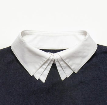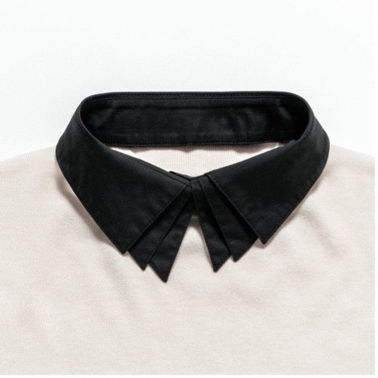 ゴルフの要所で活躍する3番ウッド〈スプーン〉のように、コーディネートの要所で活躍する付け襟シリーズ。こちらは、さざなみをモチーフにした印象的なデザイン。別売りの「コットンダーツショートT」に合わせたり、お手持ちのカットソーに合わせたりすることで、レイヤードしているような着こなしを楽しめます。