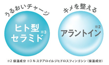 ※1 年齢に応じたお手入れ ※2 保湿成分 ※3 N-ステアロイルジヒドロスフィンゴシン(保湿成分) ※4 水添レシチン(保湿成分) ※5 セラミドNP、セラミドNG、セラミドAP(保湿成分) ※6 角層まで