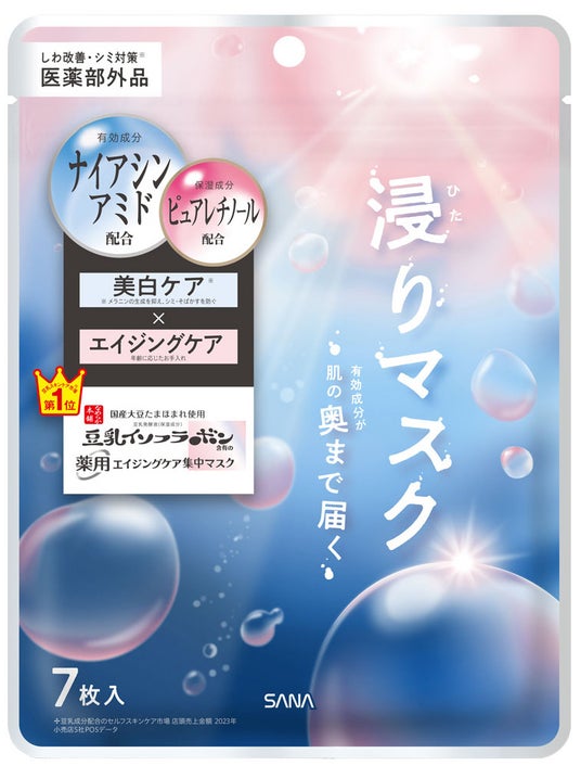 「薬用リンクルエッセンスマスク ホワイト」は、積極的な「攻め」のケアでもっちり透け肌に導く7枚入りのマスクです。有効成分ナイアシンアミド、ピュアレチノール※2とエイジングケア※1に適した大豆「たまほまれ」使用の豆乳発酵液※2を配合し、1枚で美白*・エイジングケア※1のWケアを実現。透明感のあるハリ肌へ導きます。ヒト型セラミド※3、アラントイン※2配合で乾燥からお肌を守りキメを整えます。美容液をたくわえるシルクのような極厚密着シートにもこだわりました。じゅわ~っと液が出てくる柔らかい3層構造のシートで、お肌にエッセンスをしっかり届けます。一部の店舗にて2024年9月より先行発売しており、好評いただいています。