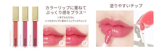 「グロスのような水艶質感」でまるで内側から輝くようなぷるんとうるおったツヤのある唇を演出。美容液由来の処方で唇にやさしく、1 日中うるおいをキープ(※3)し日中の保湿ケアとしてもご使用いただけます。