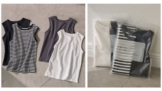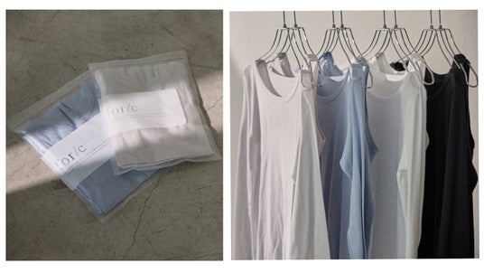 3周年を記念して、レイヤードをお楽しみいただけるシアーロンT×タンクトップセットとベーシックに着まわせるタンクトップ2pセットを発売いたします。2型ともfor/cオリジナルのリサイクルパッケージに入れて発送いたします。