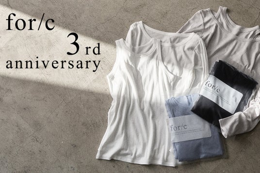 創業 70 年の老舗アパレルメーカー・クロスプラス株式会社(本社:愛知県名古屋市、代表取締役社 長:山本 大寛)が展開する、すべてにおいて人と環境にやさしい配慮をした洋服ブランド「for/c(フォーシー)」がブランド開始から3周年を迎えました。