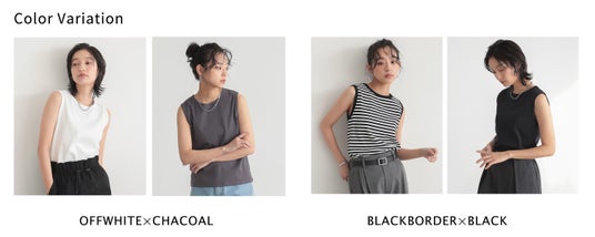 ベーシックに使えるノースリーブは、素材とカラー違いの2pセット。
