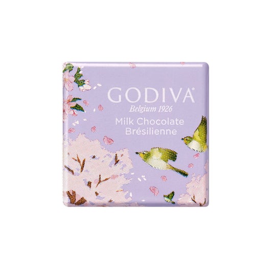 「羽ばたく春 G キューブ アソートメント 4粒入」3種類の定番G キューブを、幸せを呼ぶ青い鳥が止まっている春の花が描かれた巣箱形のパッケージに詰め合わせました。