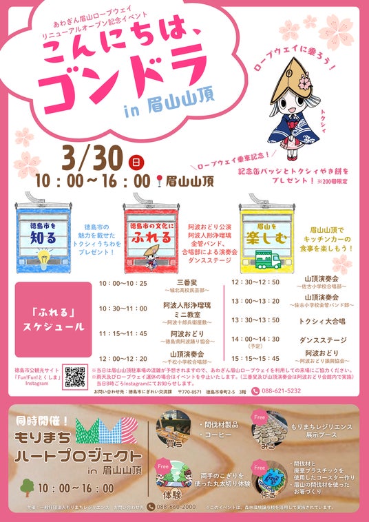 【徳島市】[3月30日(日)]「あわぎん眉山ロープウエイ」リニューアル記念イベント「こんにちは、ゴンドラ」in眉山山頂