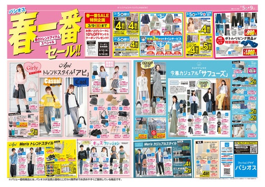 【春一番セール!!】ファッションプラザ[パシオス]にて3/5(水)よりスタート!お買い上げの方にレシートクーポンプレゼントも!