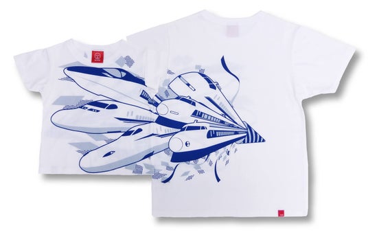 0系、100系、300系、500系、N700系、N700Sの6種の新幹線をTシャツのフロントからバックにかけて描き、ユニークかつインパクトのあるデザインに仕上げました。