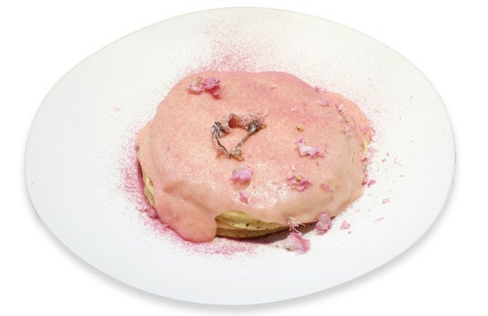 ふんわりとしたパンケーキに、桜の花びらや桜パウダーを贅沢にあしらい、ほんのり塩味がアクセントになった桜塩漬けをトッピング。
