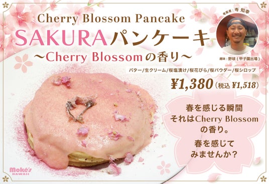 ハワイ発のパンケーキレストラン「Moke's Hawaii(モケスハワイ)江の島店」では、春限定の新作メニュー「SAKURAパンケーキ~Cherry Blossomの香り~」を3月3日より販売開始いたしました。