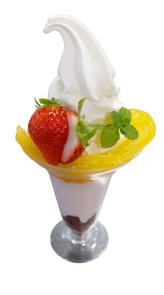牧場のナチュラルチーズとゆうべにイチゴを贅沢に使ったムースに、熊本県産デコポンをトッピング。5種の乳牛から絞った、濃厚な自慢のソフトクリームで仕上げました。