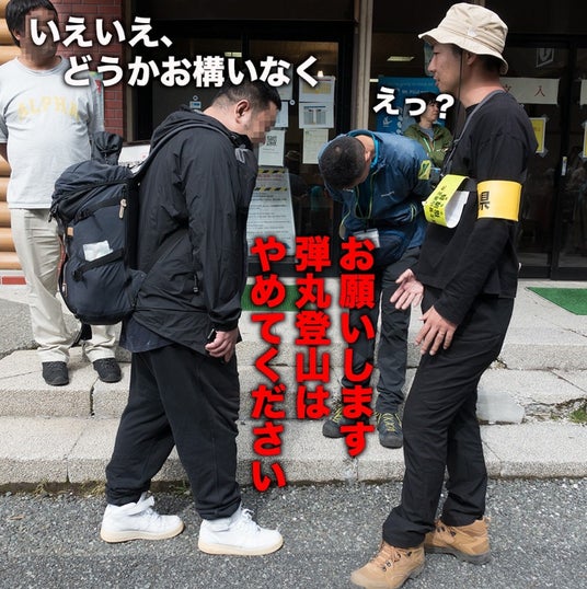 ▲宿泊せずに夜通し頂上へ向かう「弾丸登山者」も安全指導の対象です。