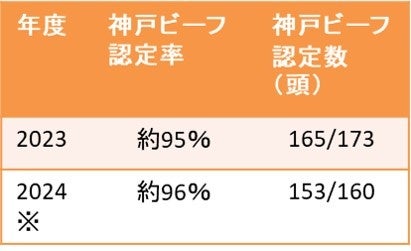 丹波篠山牛の神戸ビーフ認定率推移 ※2024年は1月末日時点 JA丹波ささやま提供