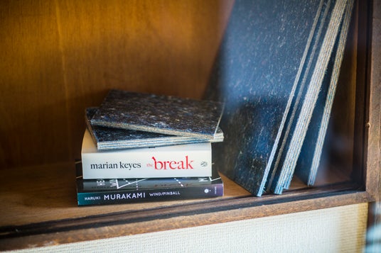 TEXLAM(R)︎の大きな特徴は、色の美しさに加えて厚み、密度、断面の意匠性を自由に変えることができる点です。京都工芸繊維大学大学院ファイブロ環境工学研究室(木村研究室)で開発された繊維由来のボードに、色を取り入れた高いデザイン性がポイントとなっています。家具やインテリアとして“見せる”使い方ができるからこそ、廃棄繊維の問題への興味を高め、環境意識を啓発する役割も果たします。