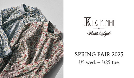 株式会社ルックが展開する、伝統的なブリティッシュスタイルのマインドやテイストを受け継いできたKEITH(キース)では、3月5日(水) ~ 3月25日(火)の期間「KEITH SPRING FAIR 2025」を開催いたします。
