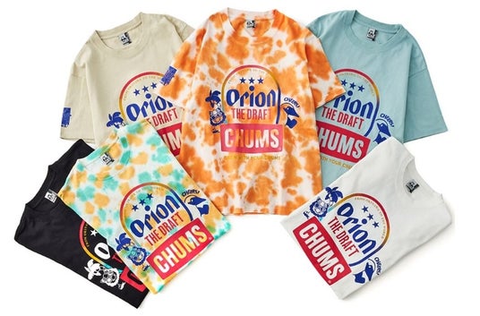 オリオンビールでは、「アウトドアシーンで大勢の仲間達と楽しい時間を過ごして欲しい。そして、豊かな自然を楽しみ、大切に思う共感の輪を広げたい。」という思いから、人気アウトドアカジュアルブランドの「CHUMS(チャムス)」とのコラボアイテムを2021年から発売しています。今年も春夏のレジャーシーンをさらに盛り上げる新作アイテムを計9点発売します。毎年大人気のコラボTシャツやアロハ風シャツに加えて今年は新しく、シャツとセットアップで着用できる新作のショーツや、ソックスなどもラインナップに加わりました。
