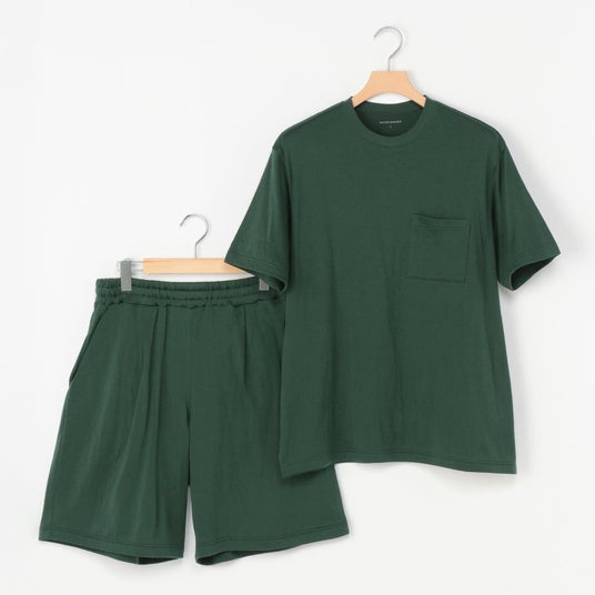 タックを入れることでゆったりとしたサイズ感で、さらにリラックスできるハーフパンツが登場。「ポケット付トップス 半袖」とセットアップにもなります。
