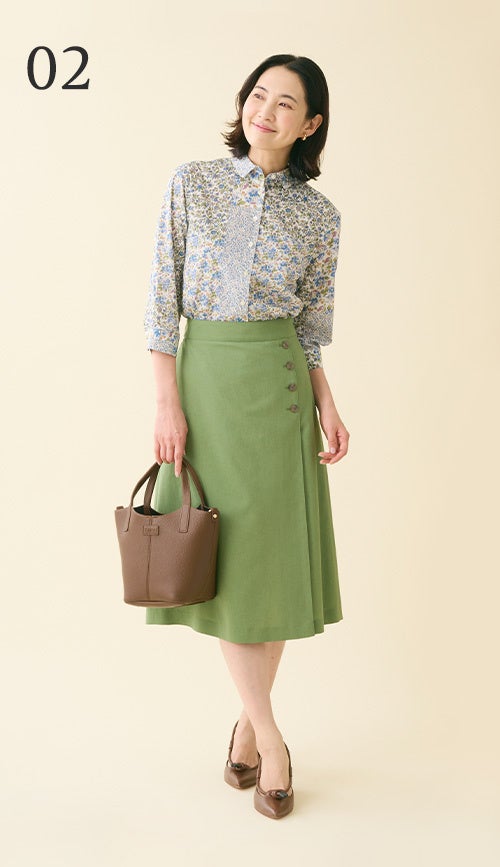 コンパクトなシルエットに仕上げることで、カジュアルになりすぎない、可憐な印象がポイント。