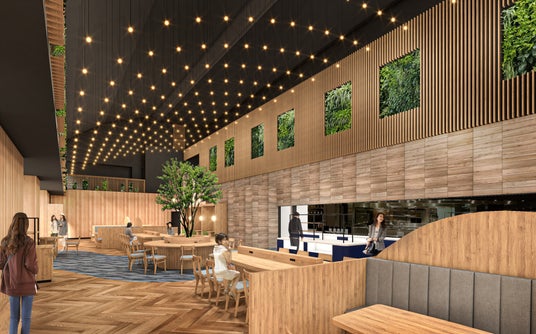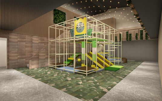 ジャングルジムや滑り台、ボールプールで体を動かして遊べるエリアをはじめ、車や電車のおもちゃで自由に遊べるエリアや、キッチンやショップのおもちゃがあるおままごとハウス、砂場エリアなど、雨の日や暑い夏、寒い冬でも安心して遊べる室内キッズエリアが登場します。