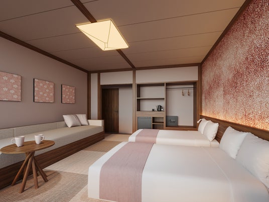 るり渓の六季折々の美しさと、奈良時代より和歌や文を綴るときに使われてきた京都の伝統工芸品「京からかみ」をモチーフにした趣のある旅館です。るり渓の六季をイメージしたお部屋には、京からかみのアートワークを設え、落ち着きのある趣を感じられるお部屋へと生まれ変わります。お部屋はベッドタイプの和洋室に変わり、館内にはご宿泊者様だけが利用できる貸切風呂やレストランをリニューアルいたします。