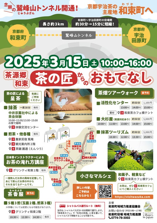 《京都・鷲峰山(じゅうぶざん)トンネル開通》3/15に「茶源郷・和束町」で記念イベント開催!
