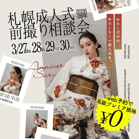 北海道のフォトスタジオ写真工房ぱれっと(本社/有限会社三景スタジオ)より、成人式の《前撮り》に特化した「札幌成人式前撮り相談会」を開催いたします。
