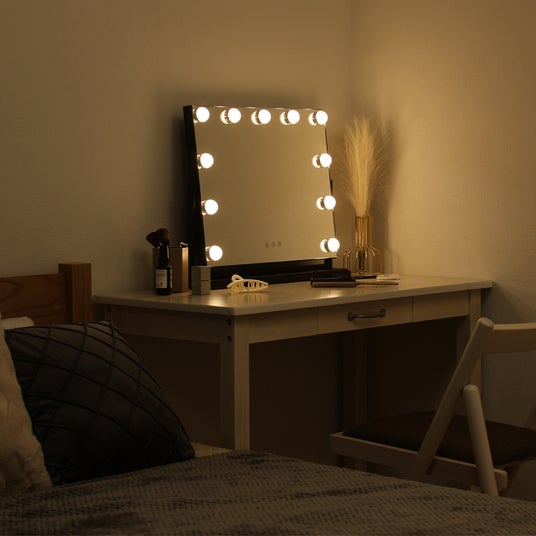 高輝度のLED電球は「昼白色・中間色・電球色」の3色に切り替えができます。またボタンを押し続けると、無段階で明るさを調整可能です。天気などによる部屋の明るさに左右されずにメイクができ、オフィスの照明環境に合わせたチェックで、好印象を目指せます。