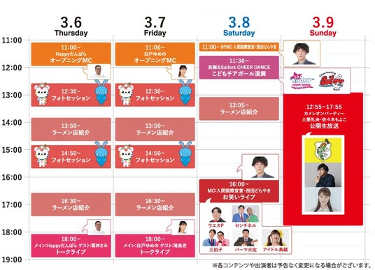 3月6日:メインMC Happyだんばら/フォトセッションやトークショーを実施します。