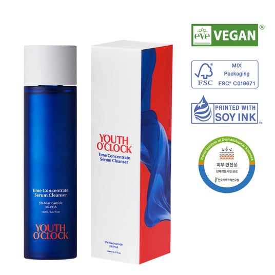本リリースでご紹介する「YOUTH O’CLOCK」の代表商品「タイム コンセントレイト セラムクレンザー」をご紹介します。このユニークで革新的なクレンジング・洗顔料は、泡ではなくセラムを使った新しい洗顔体験を提供します。実際にYOUTH O'CLOCKのセラムにも使用される美容成分がたっぷり配合されております。