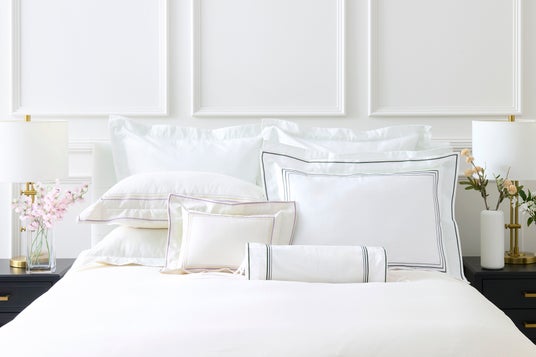今回のコレクションのメインアイテムは、ホテルライクインテリアの代名詞であるなめらかな肌触りが魅力のコットン生地の上を、3本のカラーステッチが走るベッドリネン「400TC カラートラックスシリーズ」です。色調と太さの異なるステッチが、上品な華やかさとリズムを作り出します。