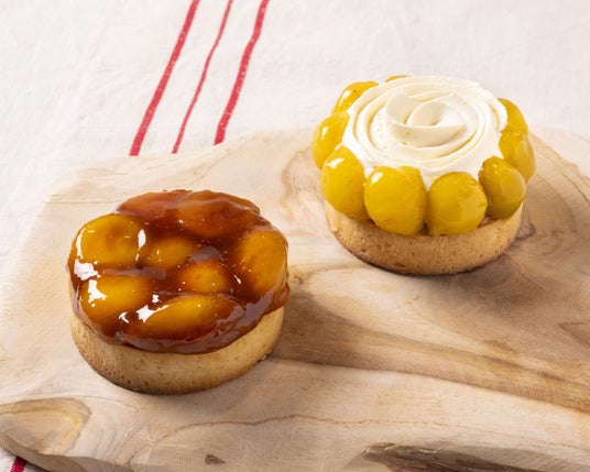 「ジュスティナティ」(右)ミラベル タルトレット(1個)※3月20日(木・祝)~25日(火)(左)ミラベル タルトタタン(1個)各980円※3月26日(水)~31日(月)◎催場※パティシエ ジョナサン・モンテノ来日