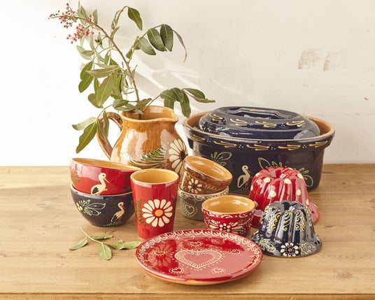 アルザスの民族衣装の少女を描いた「ハンジ」の可愛い雑貨や900年以上受け継がれる伝統工芸のスフレンハイム陶器など、手仕事のぬくもりを感じる懐かしくて素敵なものを豊富に。また美しい街や民族衣装、アルザシアンの暮らしを描くギィ・ウンテライネールがデザインした「ポワラーヌ」のビスケット缶や1806年創業の老舗「リップス」のパン・デピスも登場します。