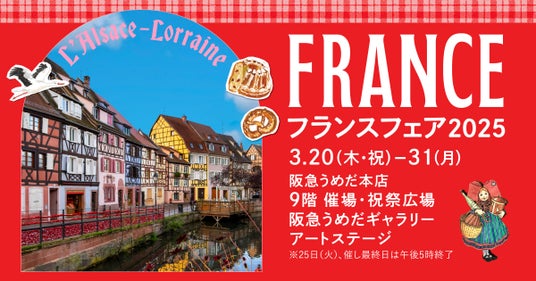 阪急うめだ本店 9階 催場・祝祭広場・阪急うめだギャラリー・アートステージでは、3月20日(木・祝)~31日(月)の期間、美食や芸術、歴史、ファッション、自然が調和するフランスの魅力を発信する「フランスフェア2025」を開催します。
