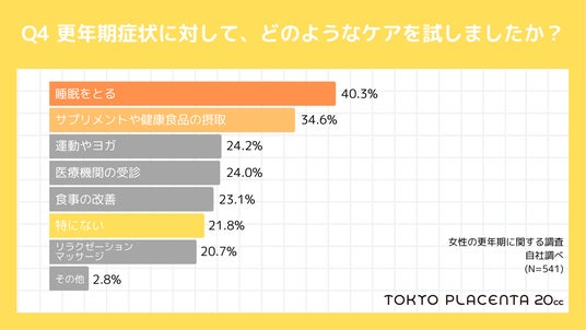 次に、更年期の症状を感じたという方を対象にどのようなケアを試してみたかを聞いてみました。