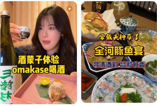 店舗のプロモーションや積極的な情報リーチに向けて、インフルエンサー来店取材と大衆点評のフィード広告を実施しました。2023年度のインフルエンサー施策では3名4店舗取材に留まりましたが、一般消費者における和食への好意度の回復が見られる本年度施策では15名17店舗への取材へ拡大。主にRED(小紅書)にて活動を行っているインフルエンサーを起用し、イベントに招致したインフルエンサーの投稿と合わせて、全体で860万回インプレッション、17.8万個のエンゲージメントを得ることができました。こちらは昨対比4.3倍の露出量となっており、各美食インフルエンサーの視点で日本酒と和食のペアリングの味わいを昨年より多くのユーザーへ届ける結果となりました。また、中国最大級の口コミアプリ「大衆点評」を活用し、特設サイトへの誘導を行うフィード広告を、和食愛好家にターゲティングして実施。11日間で約245万回露出、2.1万回クリックとなりSNSとはまた異なる層へ情報を届けることができました。