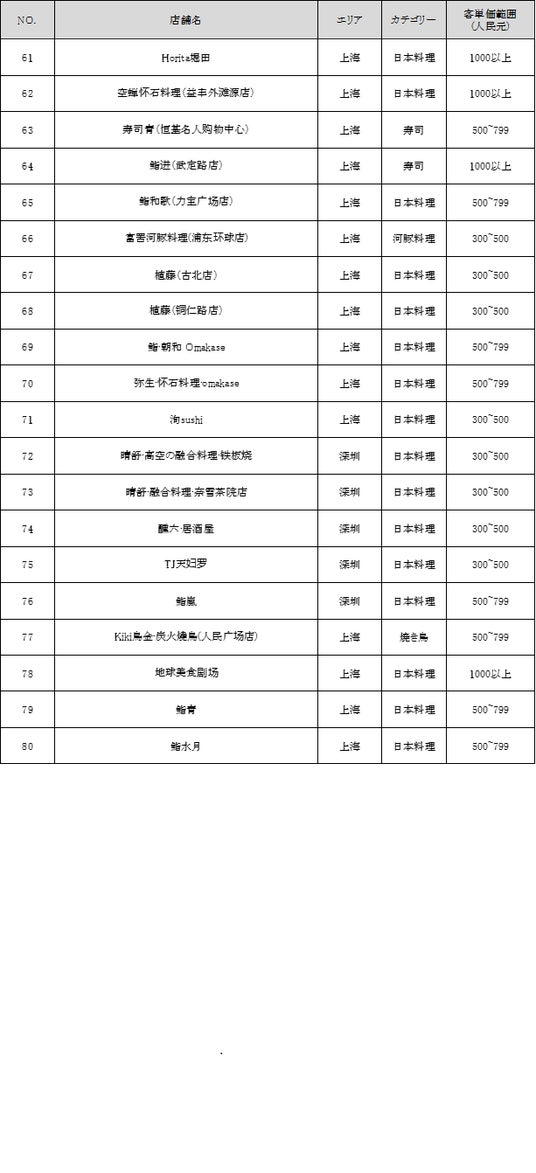 場所:上海、広州、深圳における連携和食店80店舗にて実施